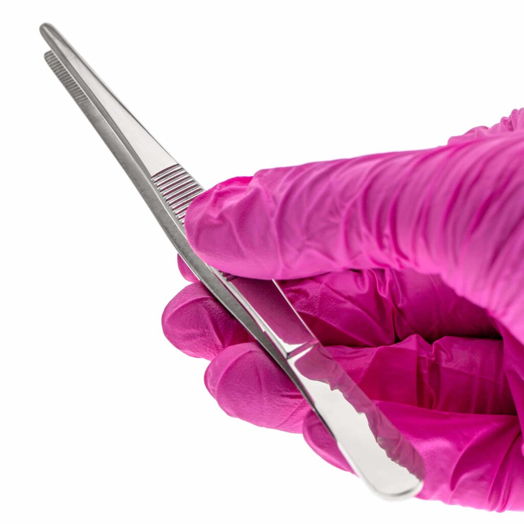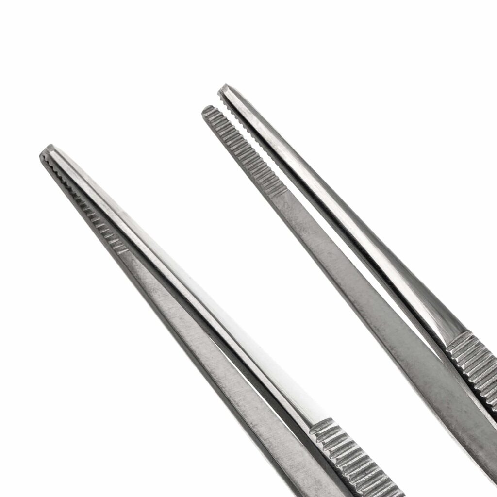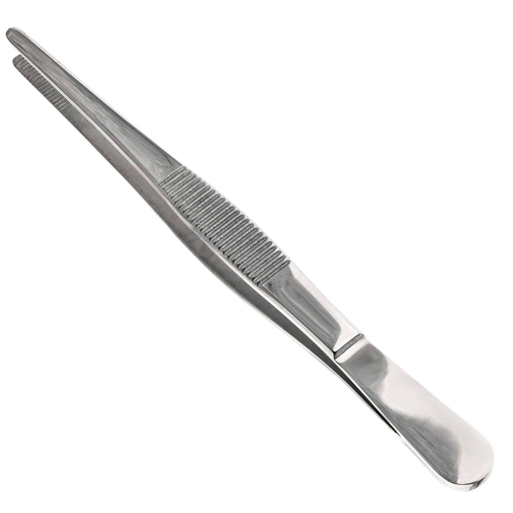 Pęseta prosta z zaokrąglonymi końcówkami.