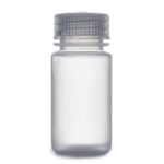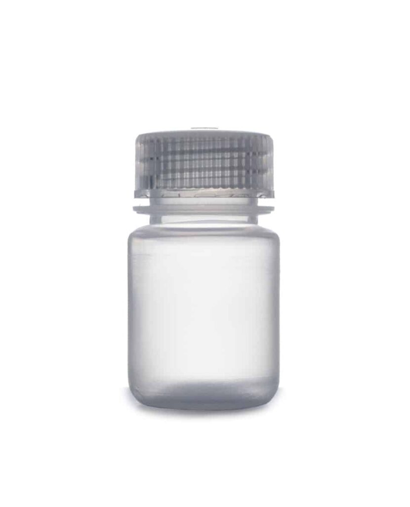 Butelka laboratoryjna z polipropylenu (PP). W komplecie z przeźroczystą nakrętką.