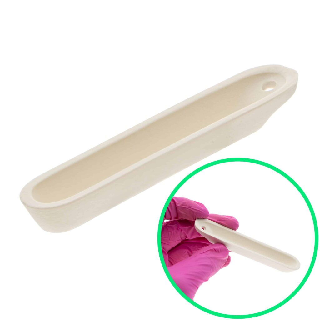 Porcelanowa łódeczka do spalań. Dostępna w wielu rozmiarach.