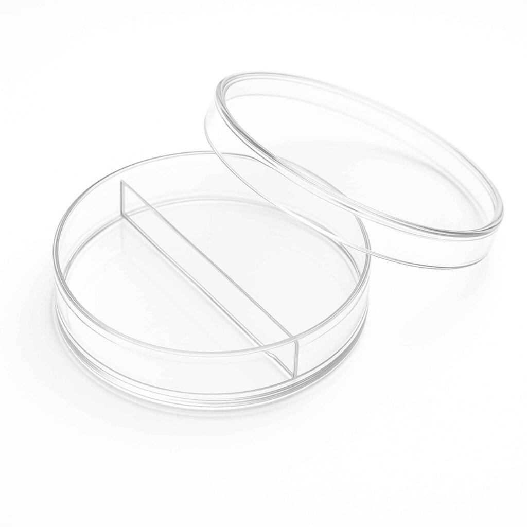 Szalki Petriego NOEX® dwukomorowe o wymiarach 90 x 14,2 mm wykonane są z wysokiej jakości przezroczystego polistyrenu (PS), zapewniającego doskonałą widoczność próbki. Zintegrowana przegroda umożliwia prowadzenie dwóch niezależnych hodowli w jednej szalce.