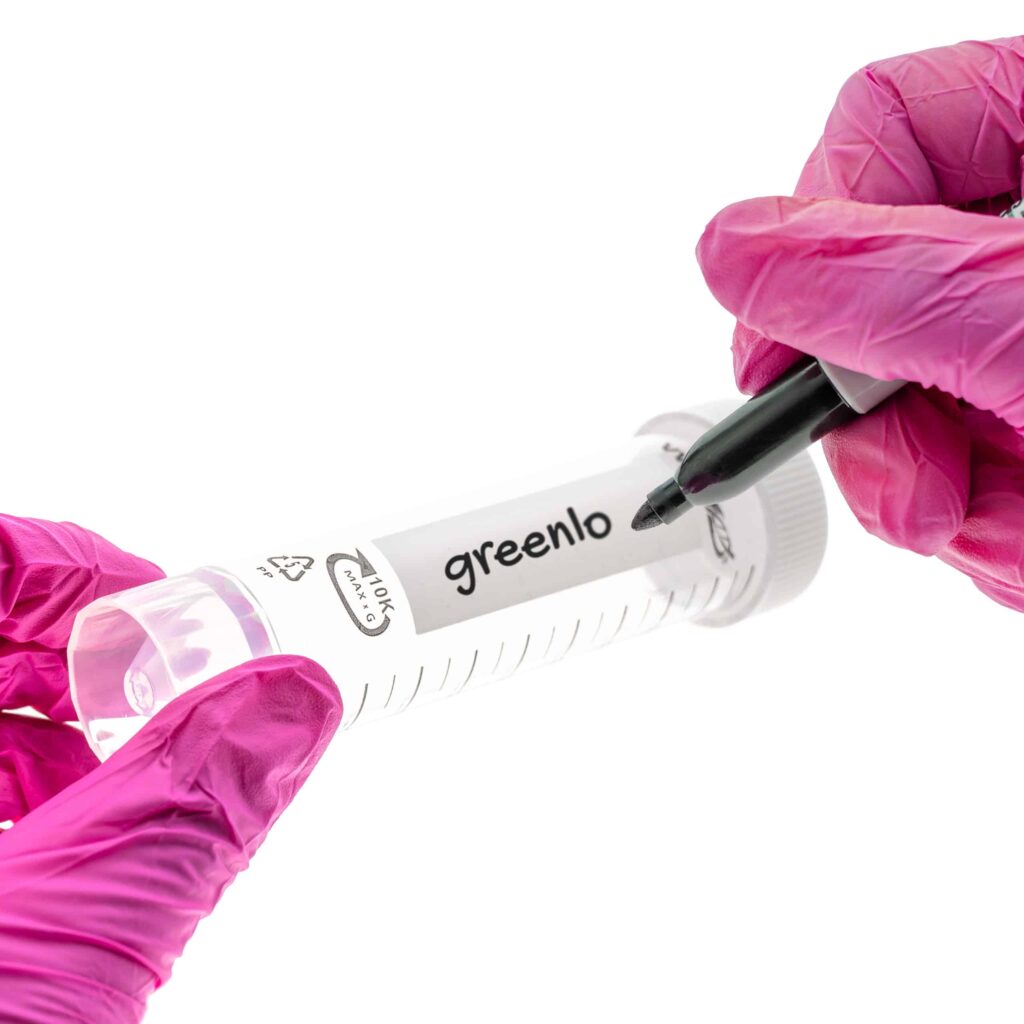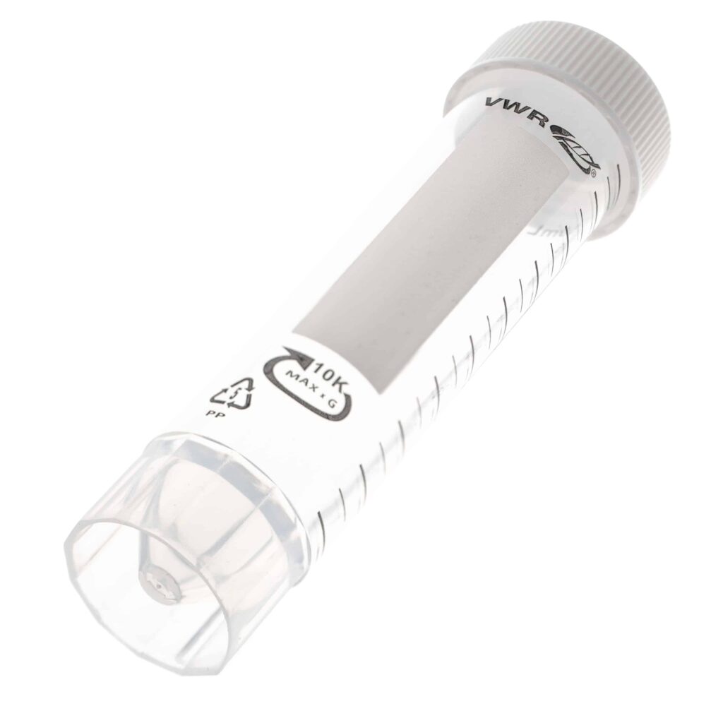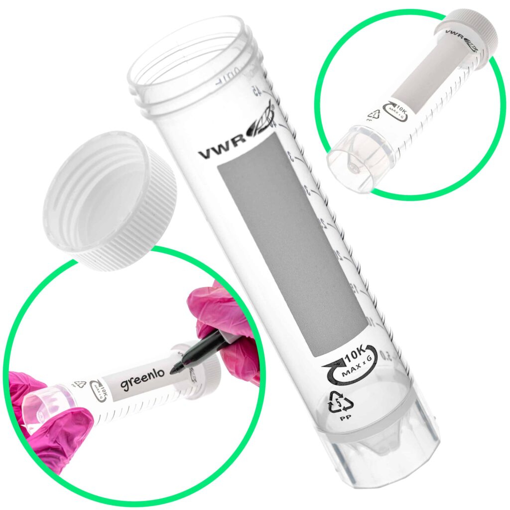 Probówki typu Falcon o pojemności 50 ml, wykonane z polipropylenu (PP), posiadają stożkowe dno, co umożliwia ich stabilne ustawienie. Probówki wyposażone są w malowaną skalę w kolorze czarnym co 5 ml oraz białą zakrętkę. Dodatkowo na probówkach znajduje się nieścieralne pole opisowe, ułatwiające identyfikację zawartości.
