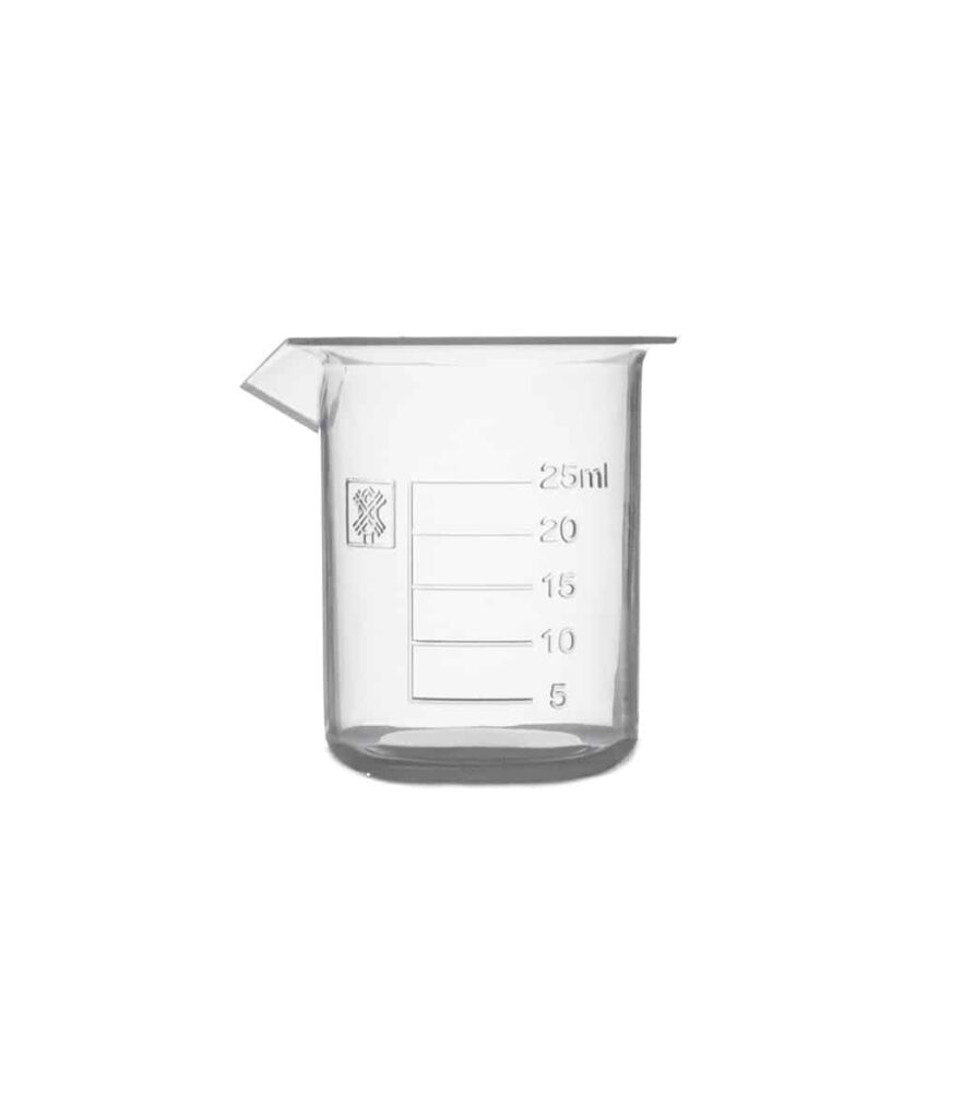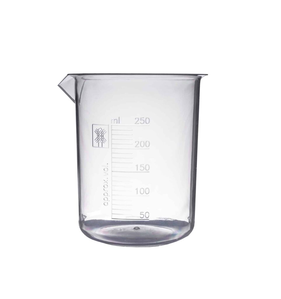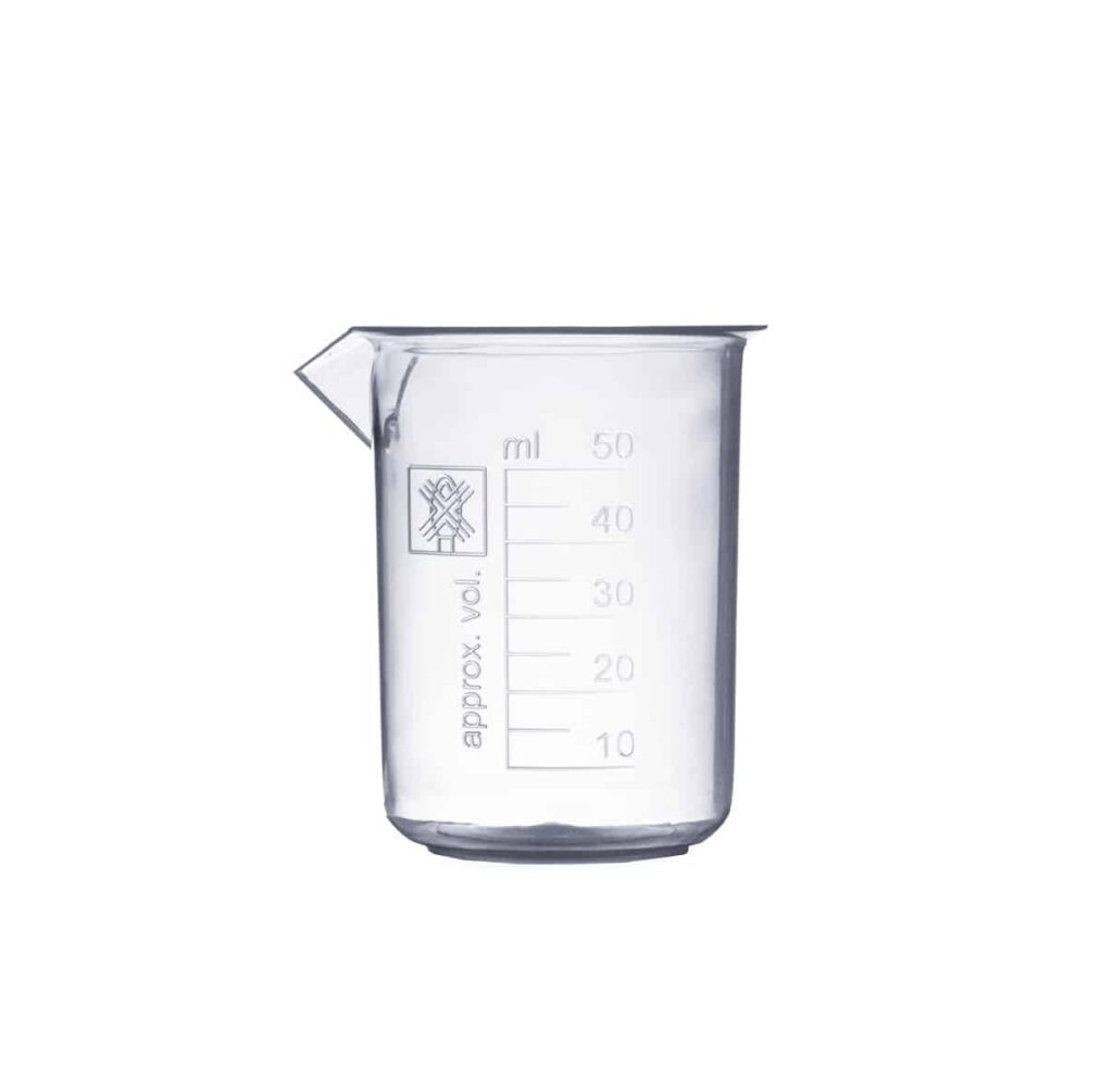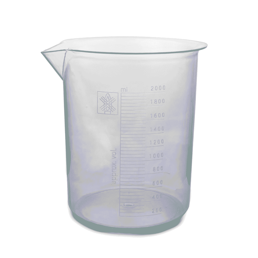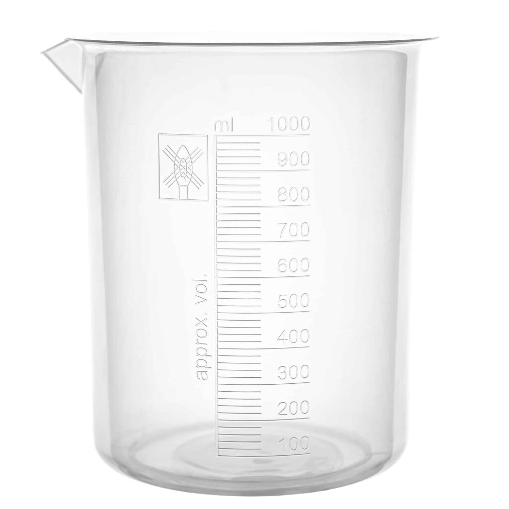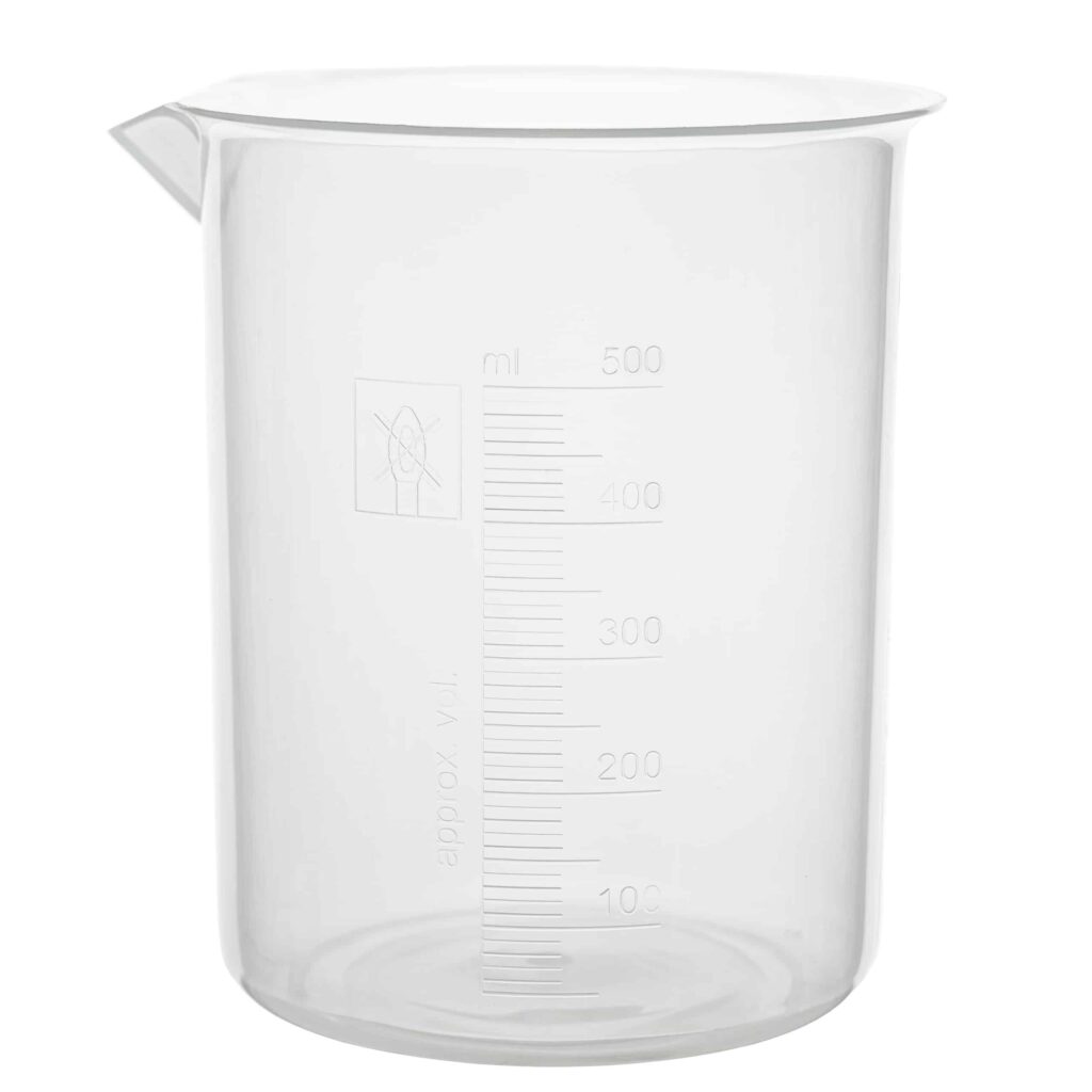Zlewka laboratoryjna wykonana z polipropylenu (PP). Dostępna w wielu rozmiarach.