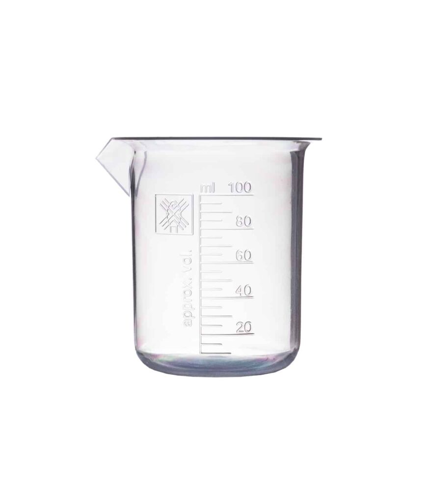 Zlewka laboratoryjna wykonana z polipropylenu (PP), dobra odporność chemiczna.
